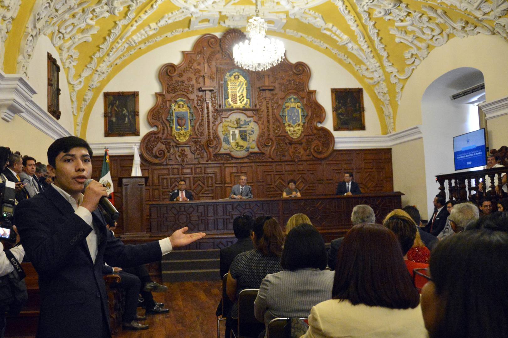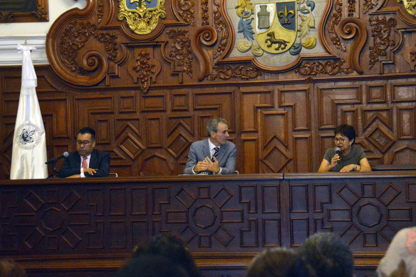 En el Salón Barroco del Edificio Carolino, donde tuvo lugar esta presentación, la Rectora María Lilia Cedillo Ramírez señaló la importancia que tiene para los universitarios conocer las propuestas de los candidatos para participar en el ejercicio democrático del próximo 2 de junio.