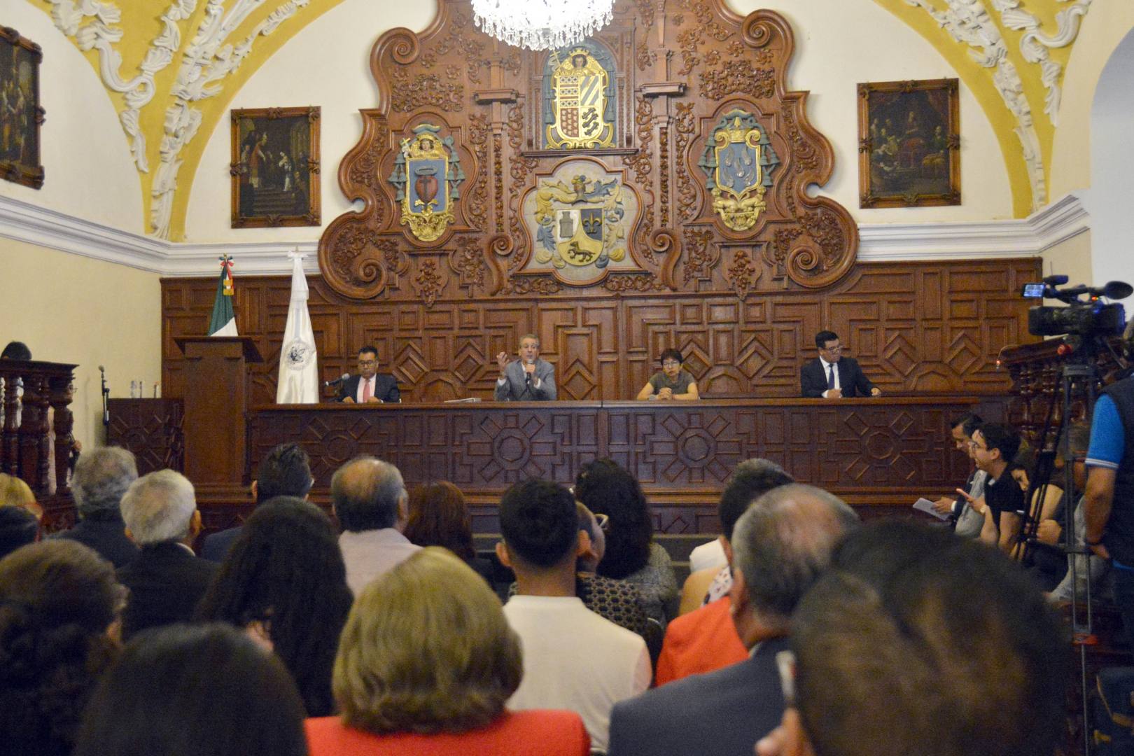 “Por ello, estamos reunidos en un sitio emblemático: el Salón Barroco del Edificio Carolino, para escuchar sus ideas sobre el desarrollo de este municipio, sede de la mayoría de nuestros estudiantes y del reciente proyecto de Ciudad Universitaria 2 (CU2)”, expresó.