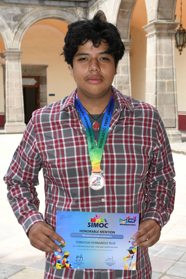 Mientras que Nephtali Jonadab Flores Gaona, de la Preparatoria Lázaro Cárdenas del Río, logró medallas de bronce en la competencia individual y en equipo en el Math Warriors. Las menciones honoríficas correspondieron a Luz Estrella Sánchez Medina y Tonatiuh Hernández Ruiz, alumnos de la Preparatoria Emiliano Zapata.