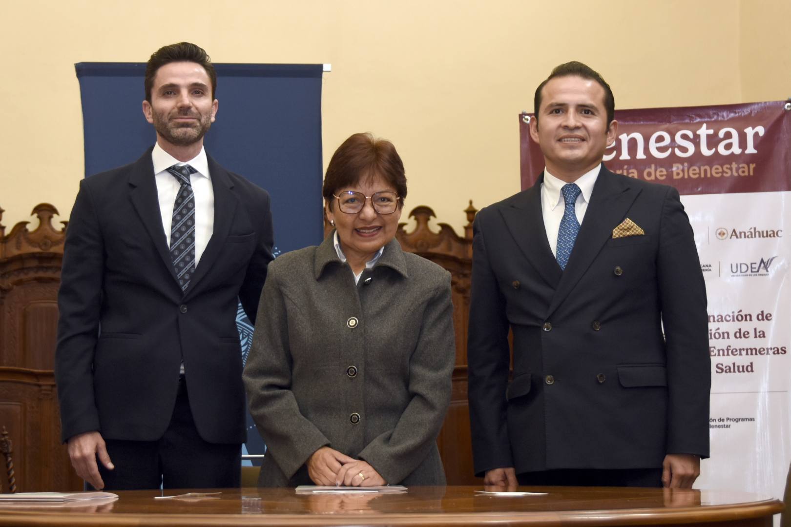 Suscribieron también este acuerdo Guadalupe Trinidad Andrade, directora de la Escuela de Enfermería Cruz Roja de Puebla; Miguel Muñoz García, de la Universidad de los Ángeles; José Antonio Llergo Victoria, secretario General de la UPAEP; Christelle Genestier, directora de la Escuela de Ciencias de la Salud de la Universidad Anáhuac; y Jaime Illescas Lozano, de la Universidad del Valle de Puebla.