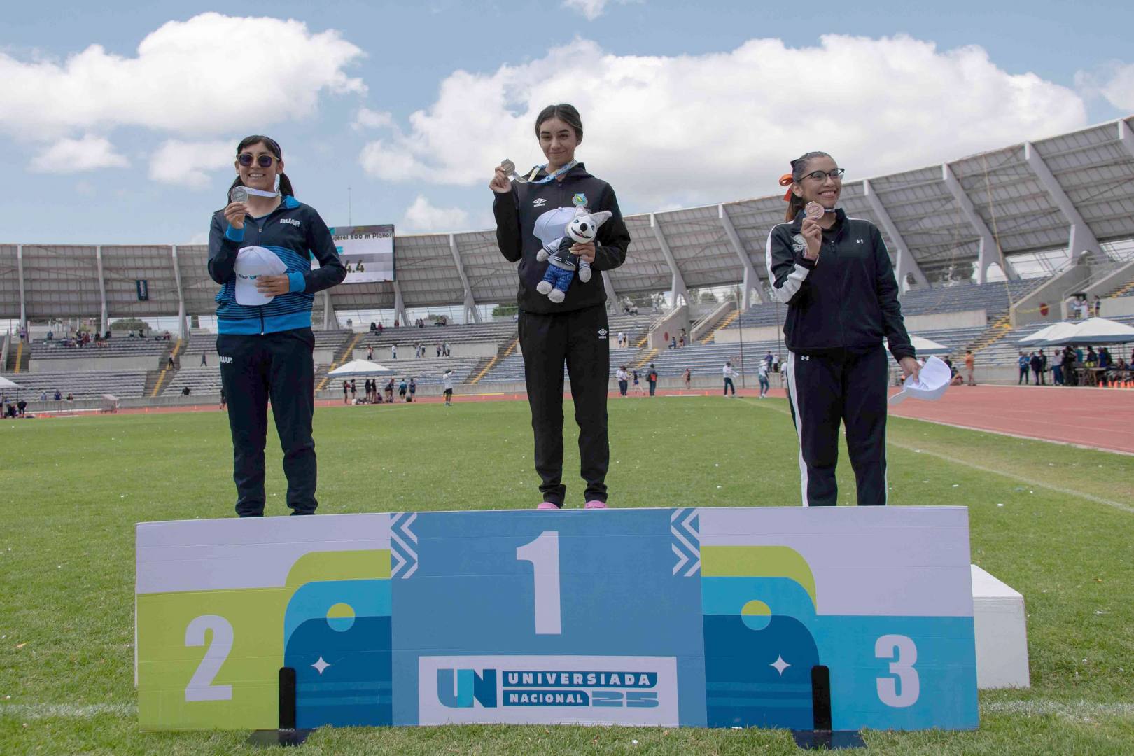 En Atletismo, los atletas de la BUAP obtuvieron 5 medallas: 3 de plata y 2 de bronce. Betzi Reyes Durán, alumna de la Licenciatura en Fisioterapia de la Facultad de Medicina, obtuvo 2 medallas: una de plata y una de bronce. La primera, la consiguió en la prueba de 5,000 metros planos y la segunda, en los 10,000 metros planos.