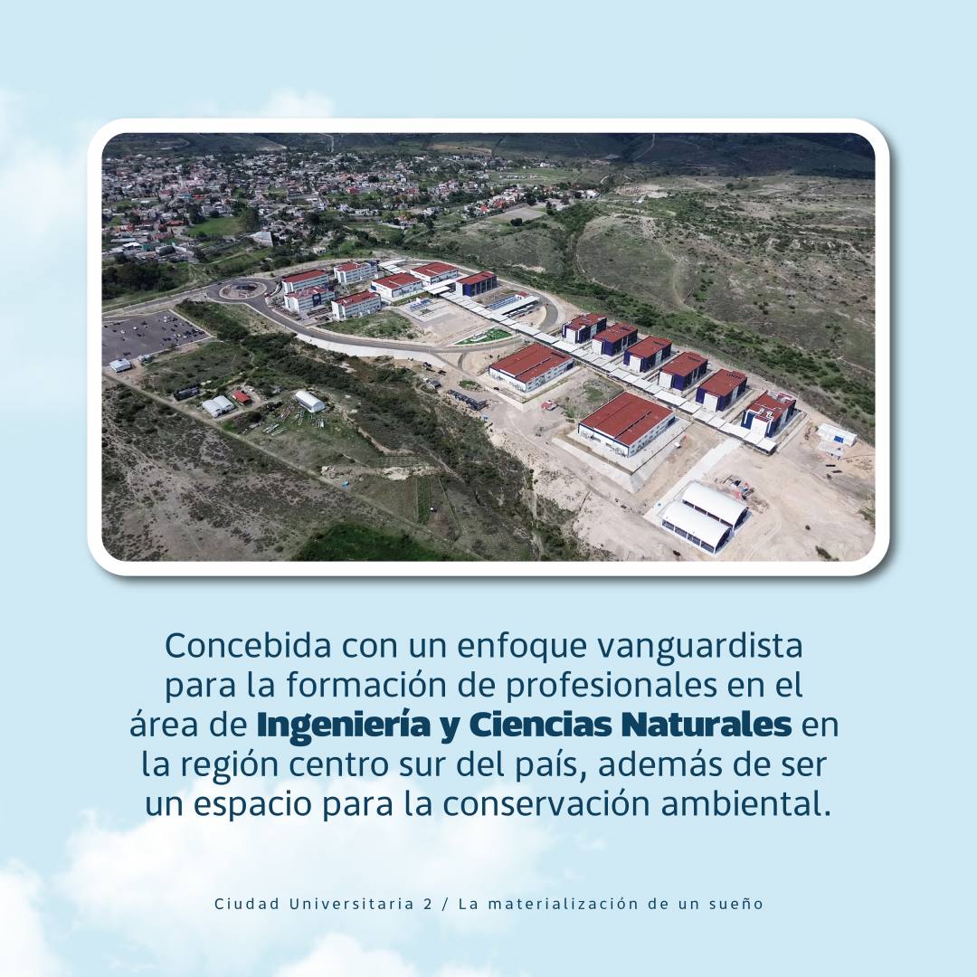 Concebido con un enfoque vanguardista para la formación de profesionales en las áreas de Ingeniería y Ciencias Naturales de la región centro sur del país, además de un espacio para la conservación ambiental, Ciudad Universitaria 2 (CU2) de la BUAP proporciona oportunidades de estudio a 5 mil alumnos en 28 planes de estudio.