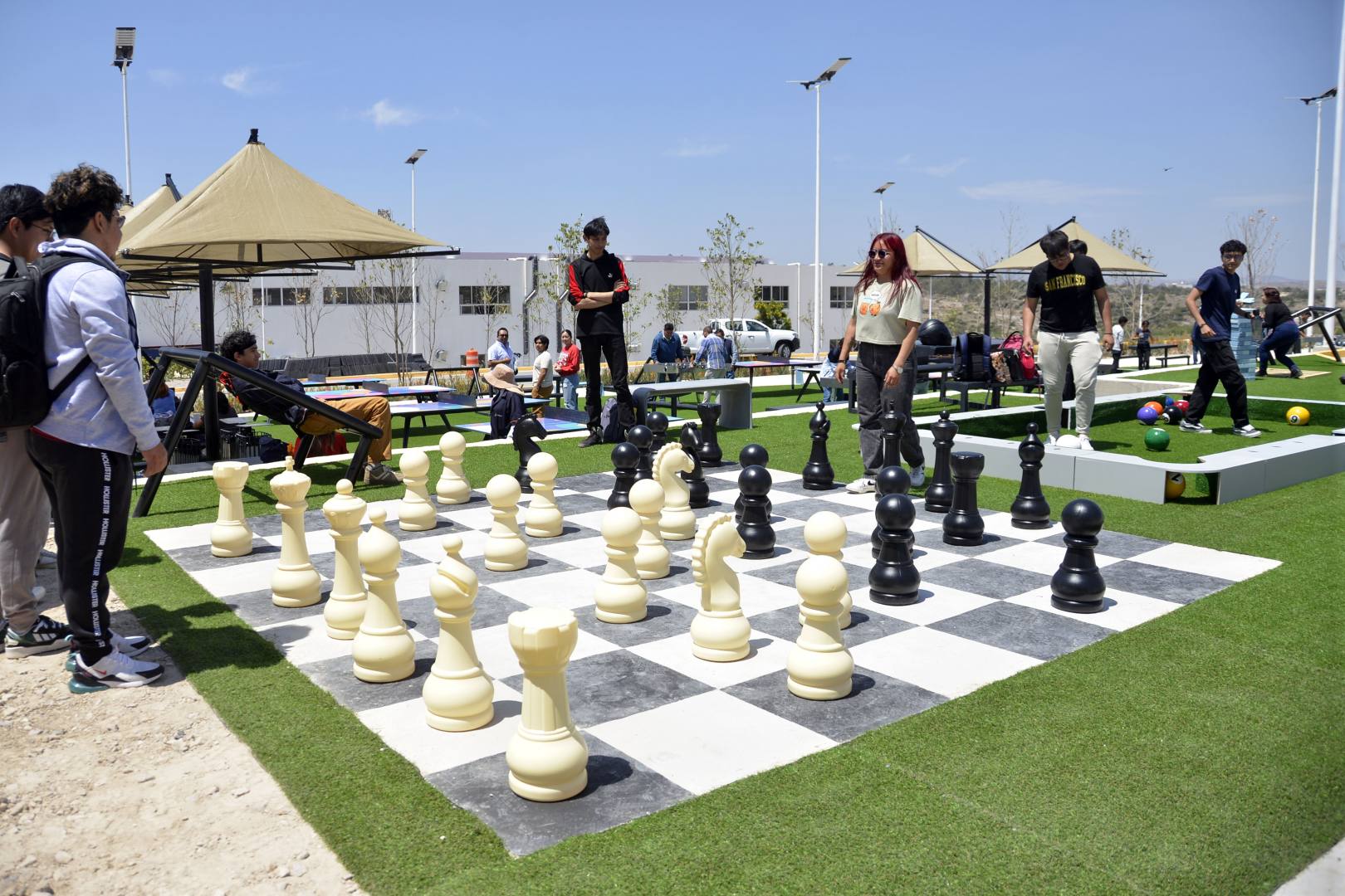 Igualmente, cuenta con espacios de esparcimiento y convivencia que invitan al descanso y desarrollo de las habilidades motrices y sociales; además de dos canchas multiusos.