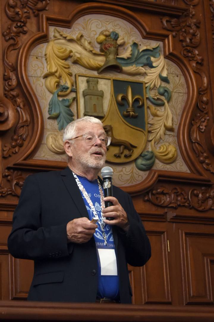 El presídium también estuvo conformado por Gabriel Kantún Montiel y Arturo Fernández Téllez, directores de la FCFM y de Divulgación Científica de la VIEP, respectivamente; David Sánchez de la Llave, director del Instituto Nacional de Astrofísica, Óptica y Electrónica, y Noboru Takeuchi Tan, vocal de congresos de dicha sociedad.