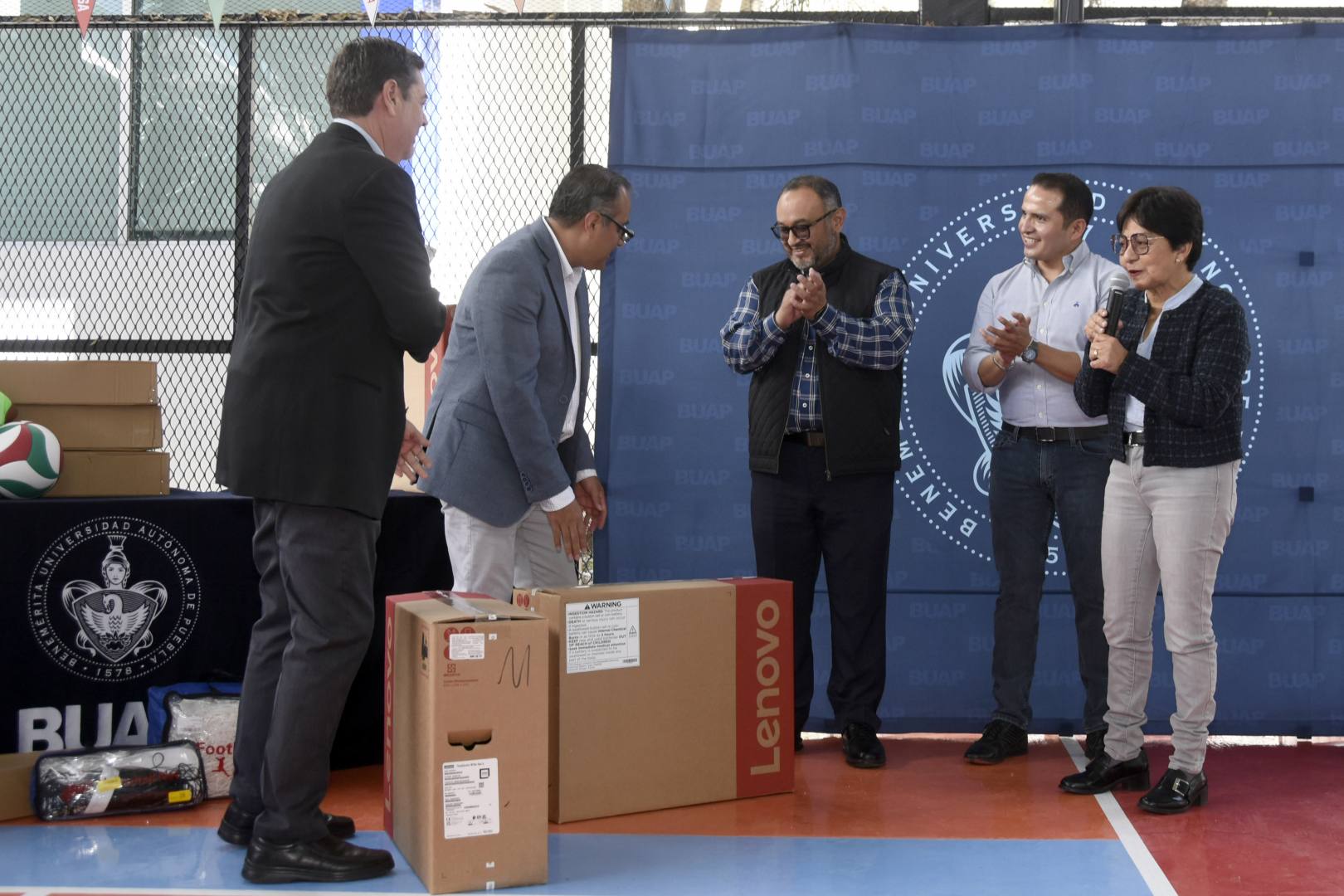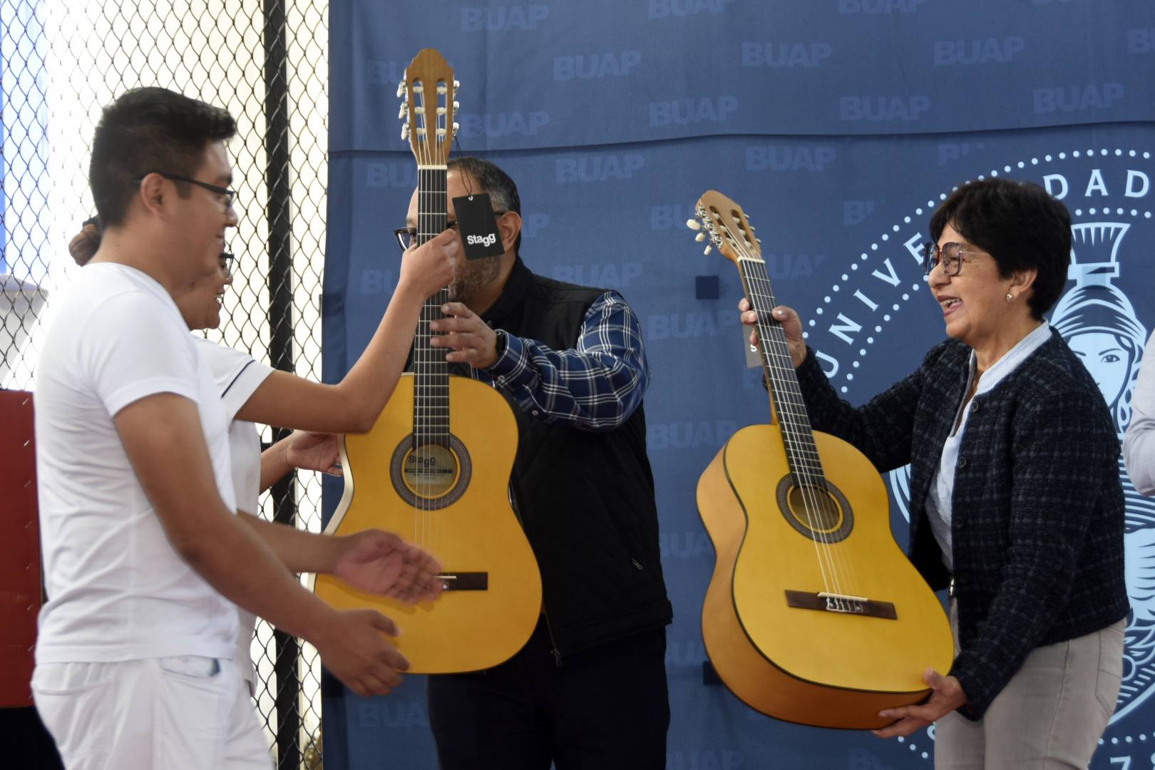 Asimismo, hizo entrega simbólica de un total de 120 equipos de cómputo, 25 guitarras y 24 balones de básquetbol que servirán para equipar a las facultades de Medicina, Enfermería y Estomatología, además de facilitar las actividades deportivas, recreativas y culturales como las que realiza la Rondalla de la Salud.