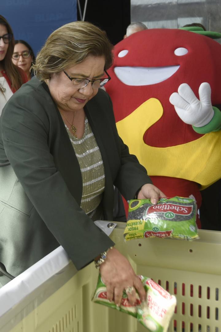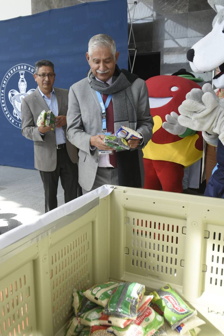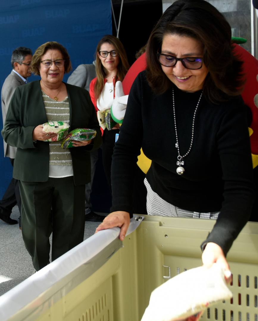 La Rectora Lilia Cedillo Ramírez convocó a los universitarios a donar kilos de arroz y frijol, para ser parte de este noble esfuerzo que realiza el Banco de Alimentos Cáritas Puebla, en beneficio de más de 160 mil personas que viven en condiciones de precariedad, quienes son atendidas semanalmente.