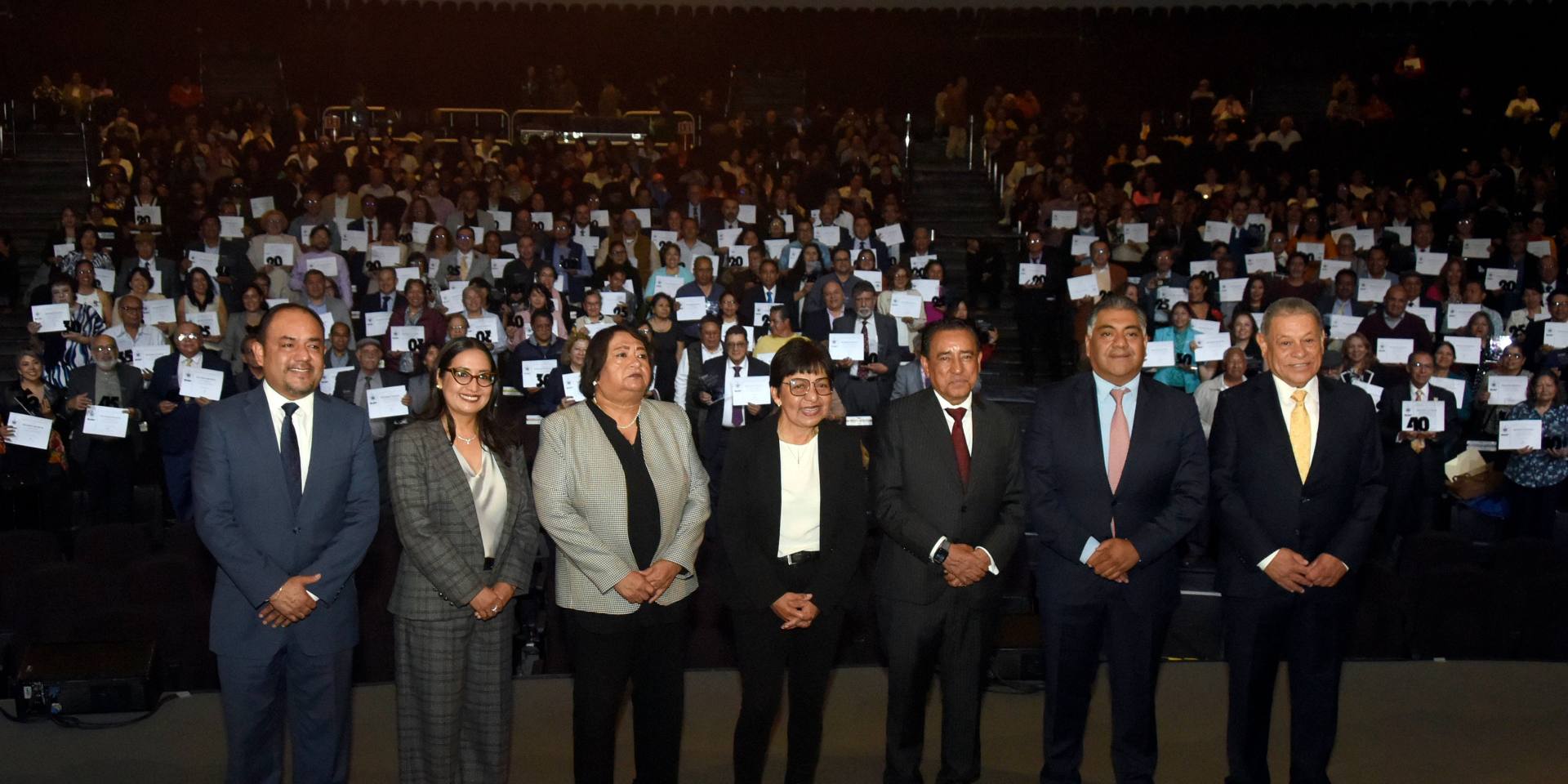 Los galardonados con 50 años de trayectoria docente son José Genaro Carmona Gutiérrez, Jesús Carrillo López, Carlos Gracia Vázquez, María Guadalupe Guzmán Coli, David Herrera Carrasco, Mariana Paula Loyola Gutiérrez, Rufino Márquez Camarillo y Celestino Soriano Soriano. Y los trabajadores administrativos con 45 años de antigüedad: Juan Isaías Aguilar Huerta y Roberto González Gil.