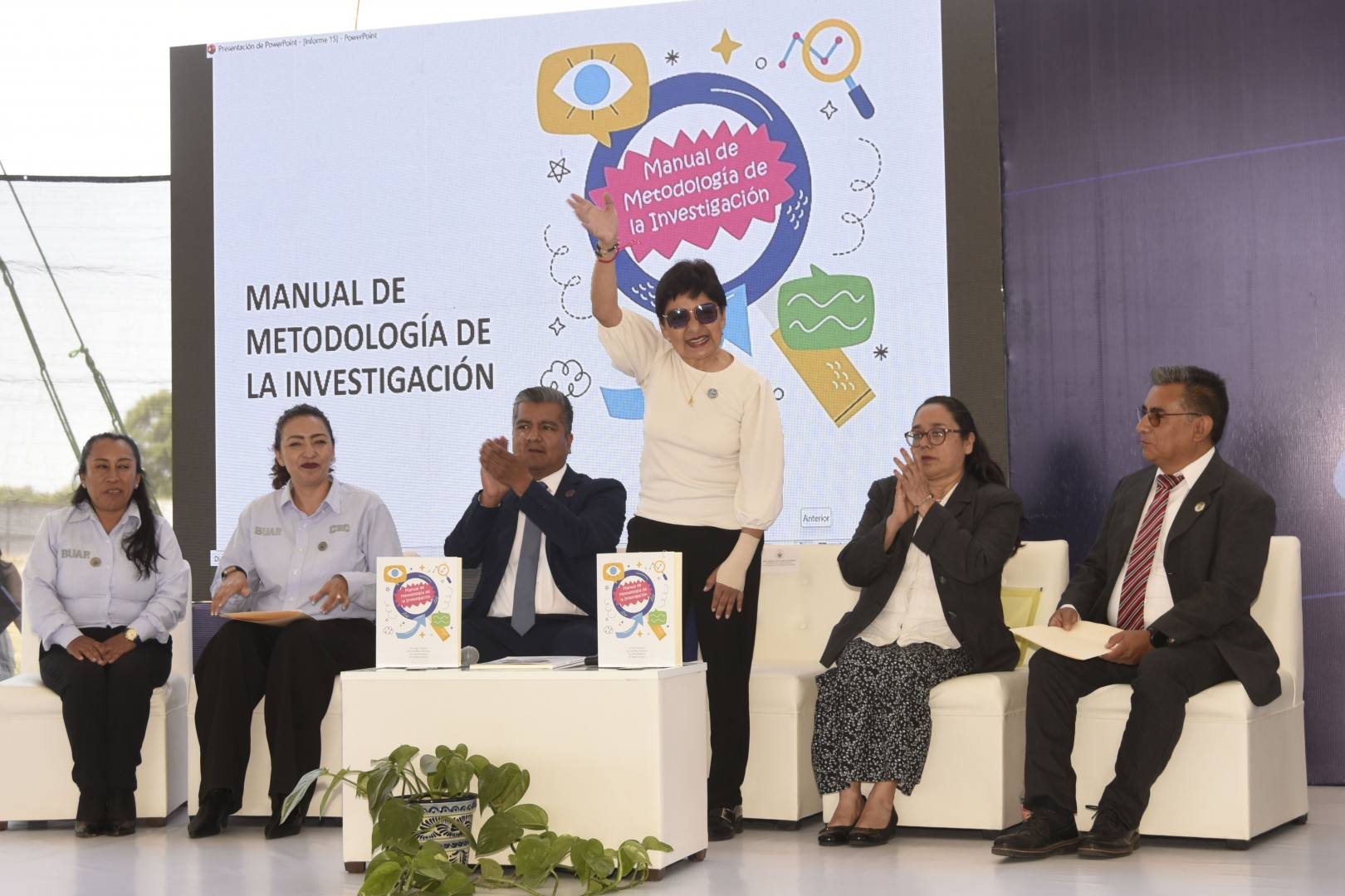 Los doctores Inés Tlalolini, Luz María Salvatore, Elda Rodríguez y Ramón Almazo presentaron el libro Metodología de la Investigación en la sede de Acajete que pertenece al Complejo Regional Centro de la BUAP. Allí, la Rectora Lilia Cedillo Ramírez destacó el impulso que esta obra da a los jóvenes para dedicarse a la investigación, sin importar la edad, porque ofrece herramientas que cuentan con un rigor académico.