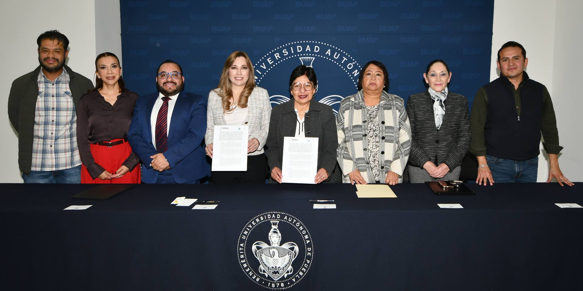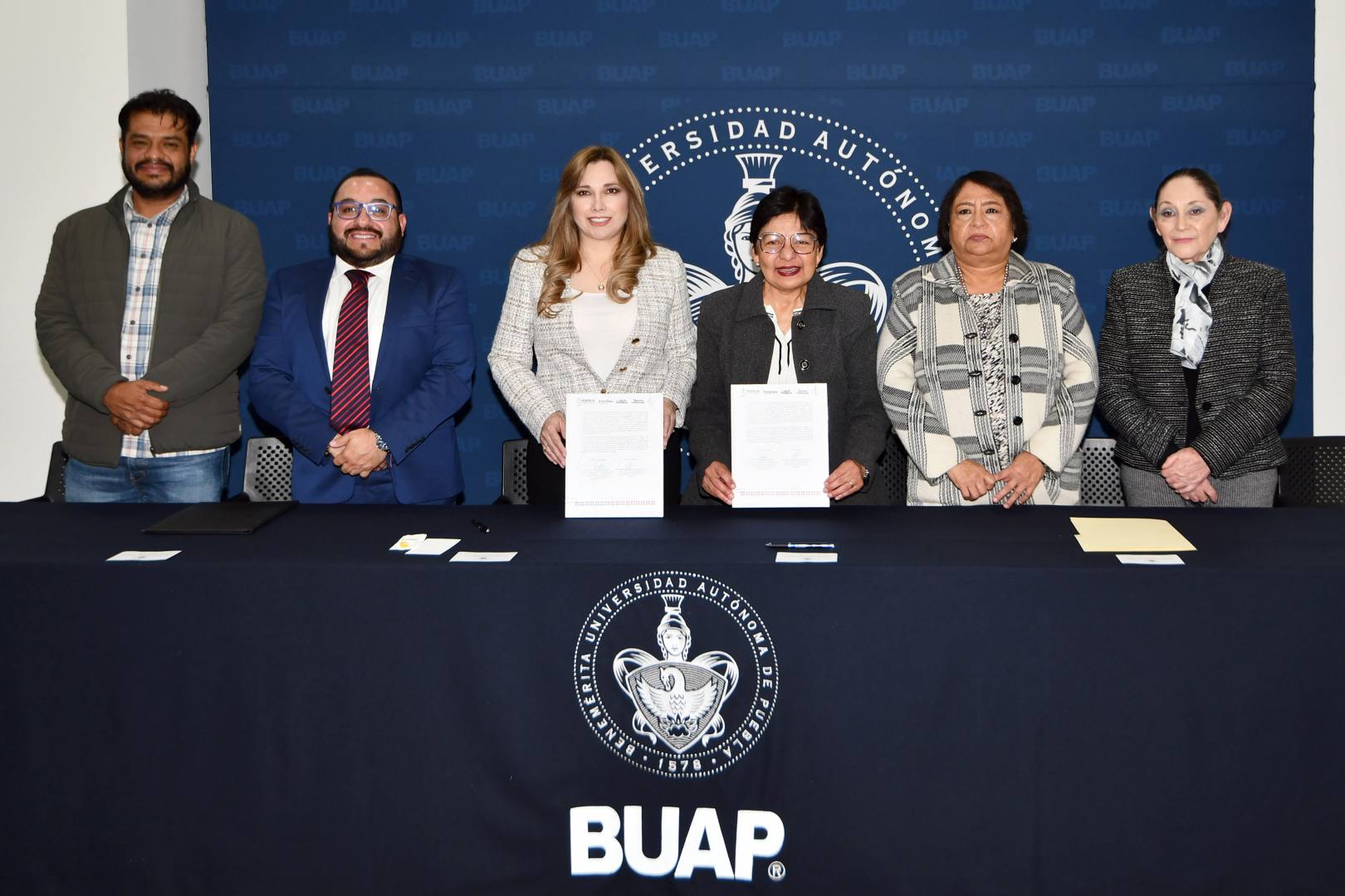 A través de este trabajo conjunto se aspira a fortalecer programas y desarrollar proyectos, intercambiar conocimientos y formar recursos humanos comprometidos con el bienestar colectivo y el desarrollo social los asistentes a la firma: Miriam Olga Ponce Gómez, Abogada General de la BUAP; María del Carmen Paniagua Alcántara, titular de la Unidad de Asistencia Social y Salud del SEDIF; Juan Antonio Cruz Moctezuma, Secretario Administrativo de la BUAP.