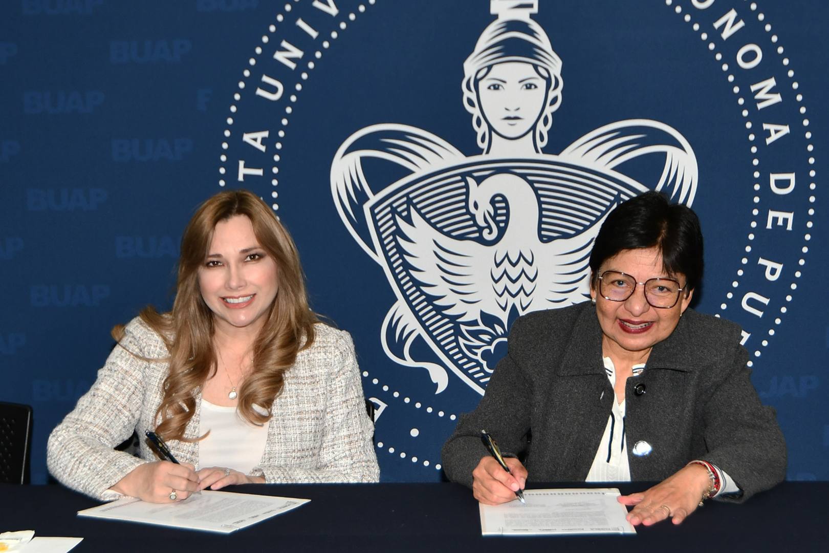 Signan el convenio: la doctora Lilia Cedillo Ramírez, Rectora de la BUAP y Ceci Arellano, Presidenta del Patronato del Sistema Estatal DIF teniendo como objetivo del convenio: establecer bases de colaboración y coordinación para realizar acciones conjuntas en beneficio de la población estudiantil de la BUAP, fundamentalmente las alumnas y alumnos que son madres y padres de familia.