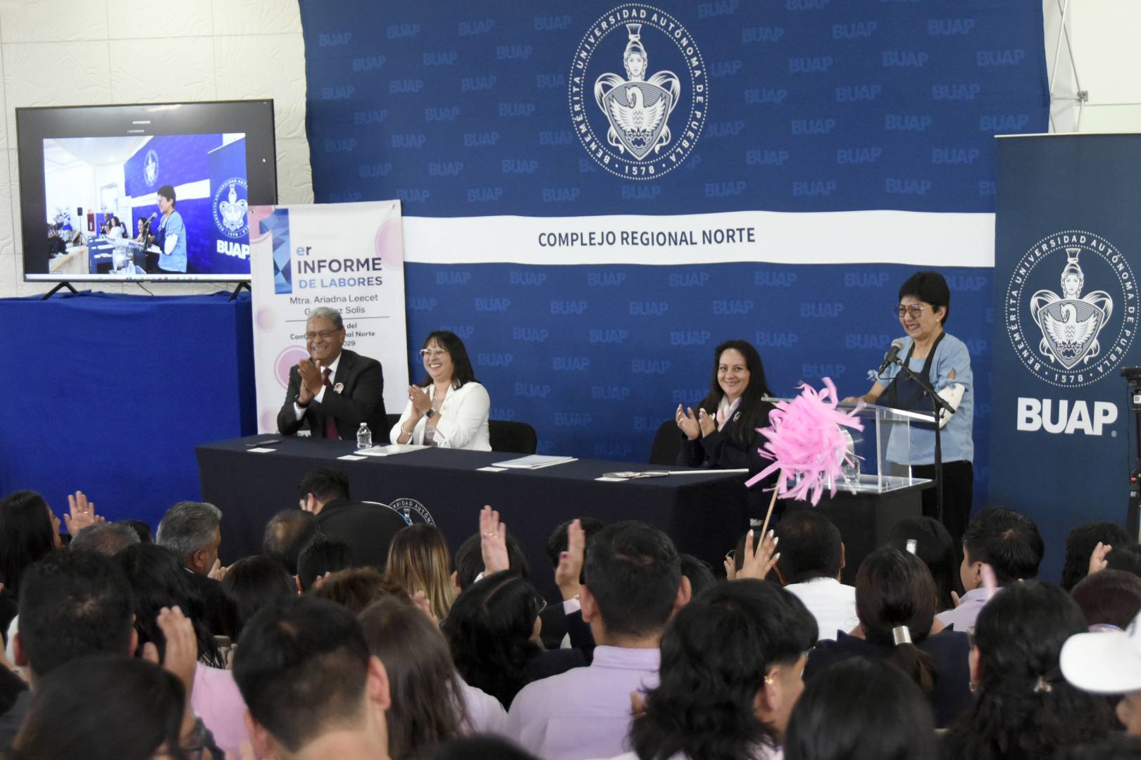 La maestra Ariadna Leecet González Solís presentó su Primer Informe de Labores como directora del Complejo Regional Norte de la BUAP.