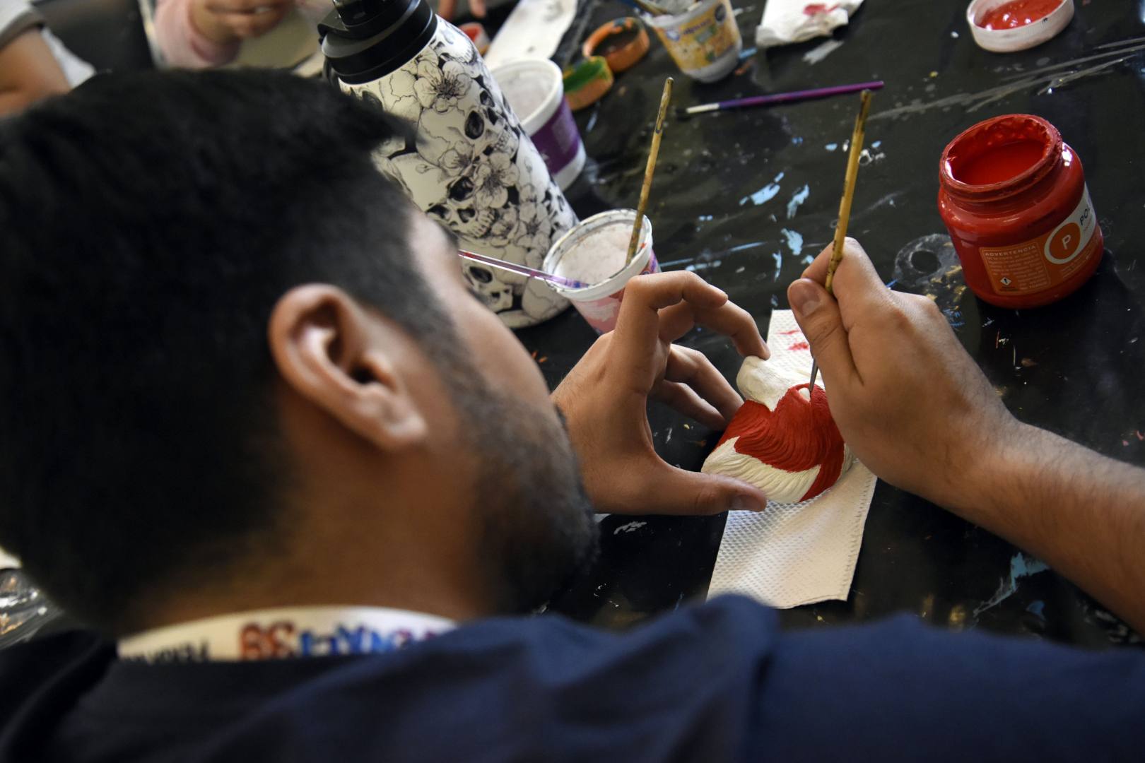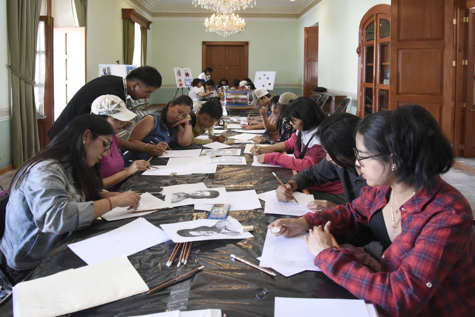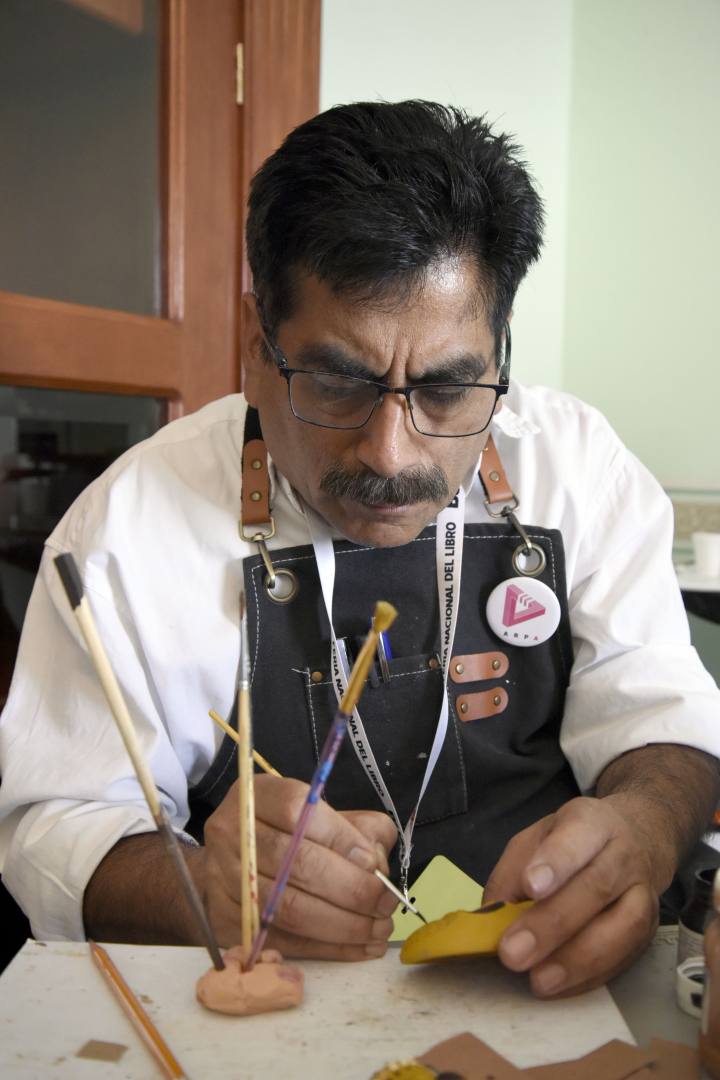 Dentro de la FENALI 39, en el Salón Verde, la gente se puede acercar a los talleres que ofrece la Vicerrectoría de Extensión y Difusión de la Cultura: Estampación de grabado, linóleo; caricatura, pintura de figura de lobito de barro, grabado técnica de monotipia, modelado de plastilina, taller de collage y pintura.