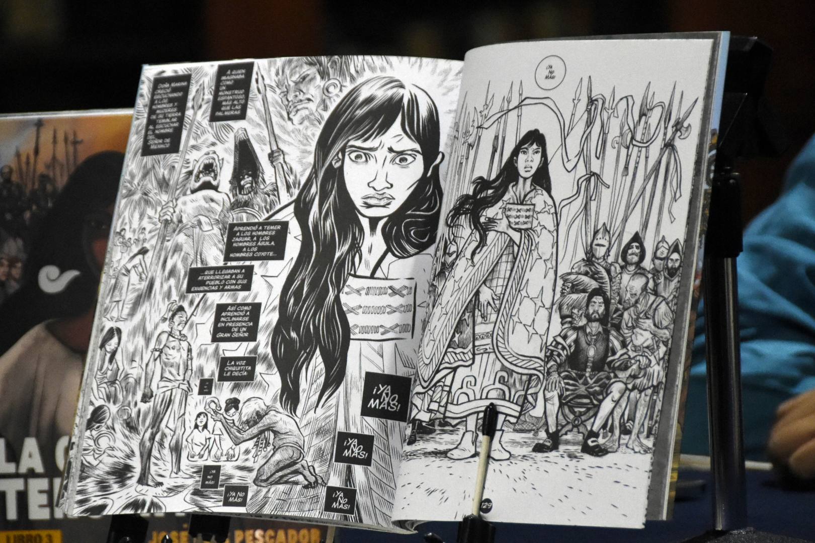 El tomo 4 relata uno de los sucesos más crueles de la guerra entre españoles y mexicas: la masacre de Cholula, así como la toma de conciencia de Malintzin, personaje vital que encarna el proceso de cambio y toma de decisiones.