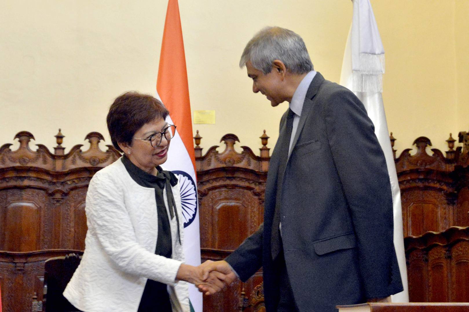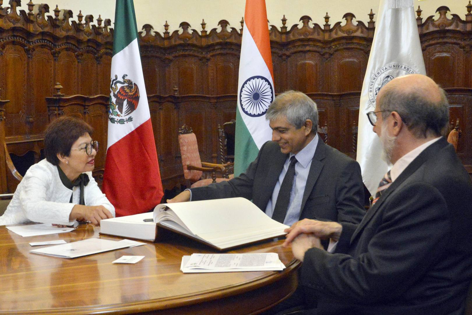 Con la finalidad de establecer sinergias que contribuyan a la vinculación de la BUAP con instituciones de educación superior de India, para impulsar el intercambio académico y la investigación, la Rectora María Lilia Cedillo Ramírez se reunió con el embajador de este país al sur de Asia, Pankaj Sharma.