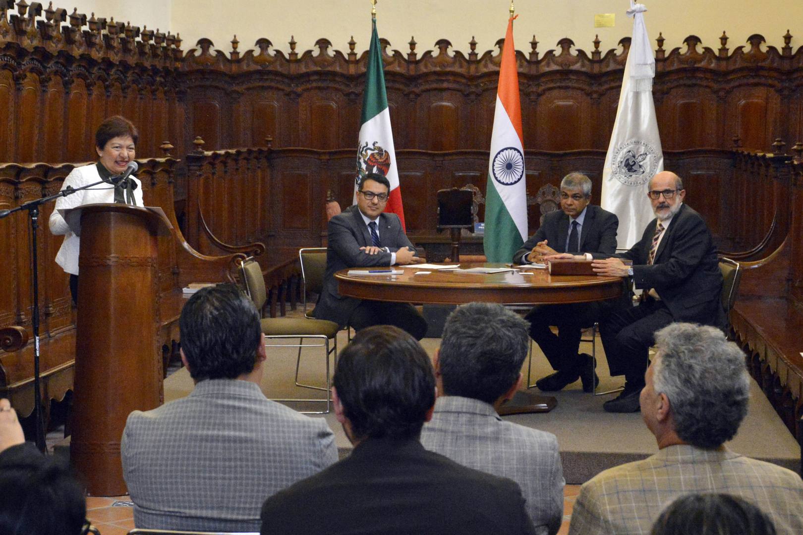 En el Paraninfo del Edificio Carolino, donde acudieron integrantes de la Confederación Patronal de la República Mexicana (Coparmex) y la Cámara Nacional de la Industria de la Transformación (Canacintra), la doctora Cedillo reconoció que esta es la primera vez que la institución está tan cerca de un embajador de India, país con el cual se tienen similitudes culturales, como la alimentación.