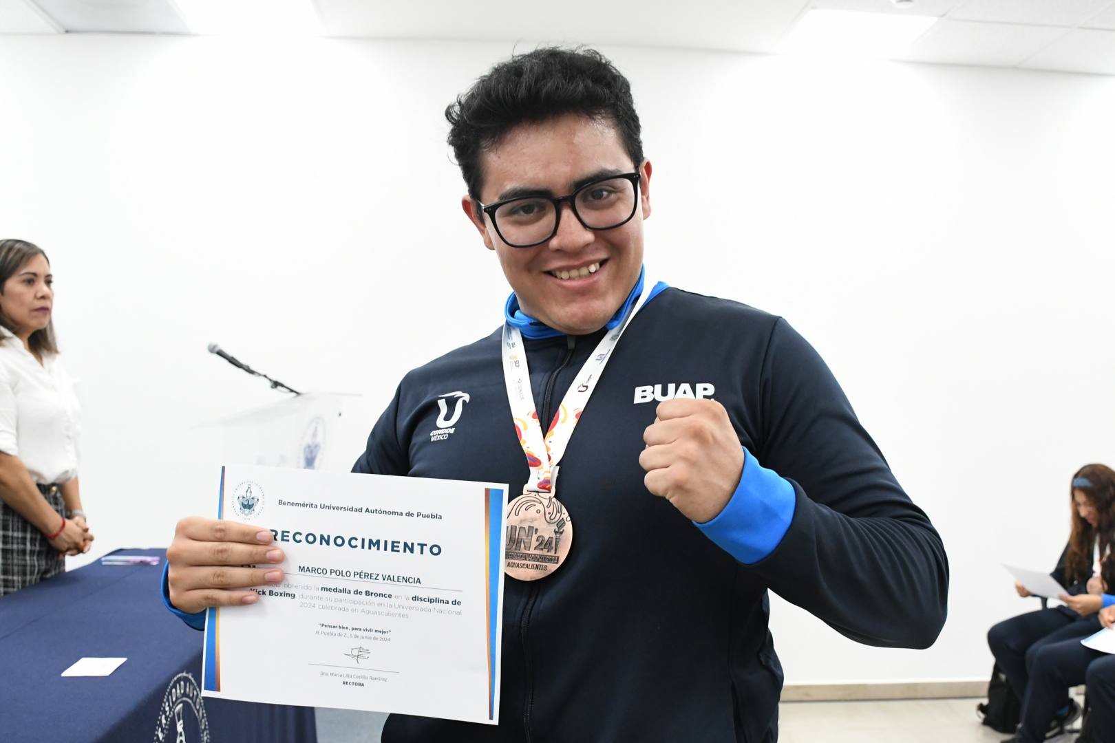 En esta ceremonia estuvo presente el titular de la Dirección de Deporte y Cultura Física (DIDECUFI), José Miguel López Serrano, quien recordó que luego de tres semanas de intensas competencias, la BUAP logró acumular 21 medallas y mil 220 puntos. Por su parte, Fátima Mariela Jiménez Vázquez, coordinadora General de Becas BUAP, indicó que se entregarán estímulos que van de 2 mil a 5 mil pesos, dependiendo de la medalla obtenida.