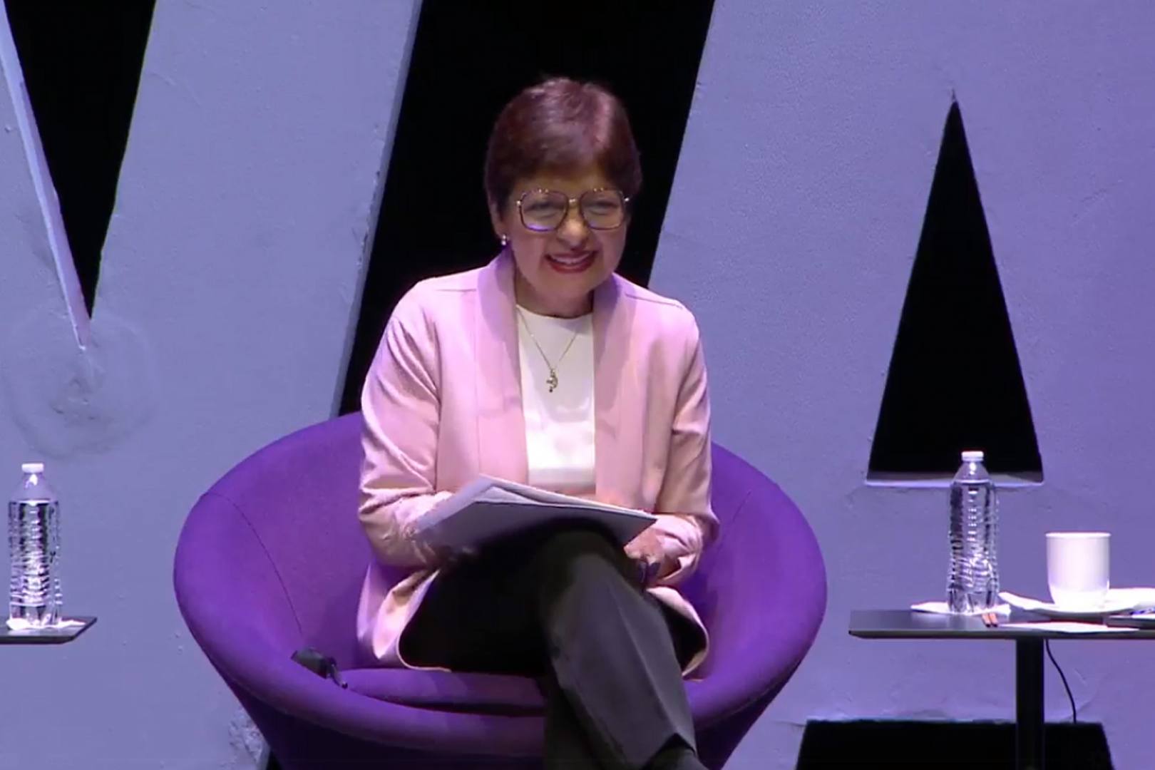En un segundo bloque de preguntas sobre el quehacer de las universidades frente al avance del conocimiento y la tecnología, la Rectora de la BUAP insistió en no soslayar la formación de seres humanos honestos, tolerantes y comprometidos con el cuidado del medio ambiente.