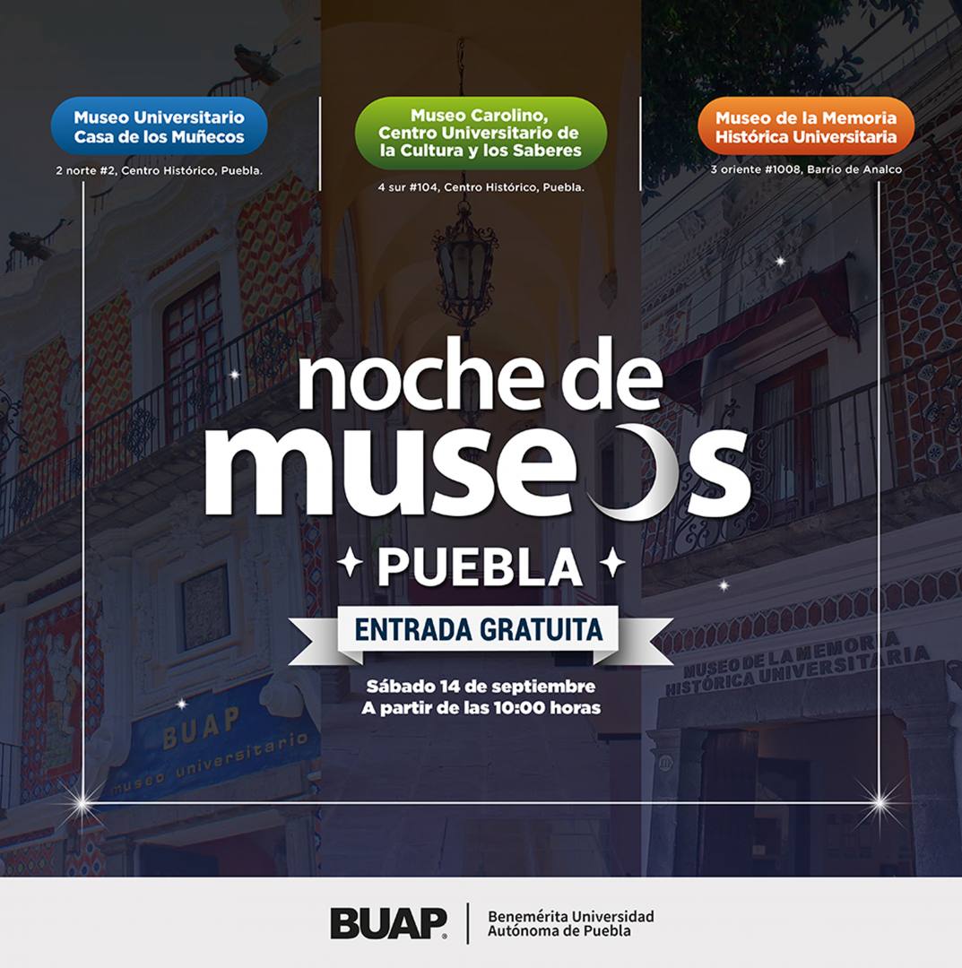 El acervo histórico y artístico de la BUAP, resguardado en sus museos Casa de los Muñecos, Memoria Histórica Universitaria y Carolino. Centro de la Cultura y los Saberes, estará expuesto de forma gratuita al público en general este 14 de septiembre, como parte de la colaboración de esta casa de estudios con Noche de Museos 2024, un programa del Ayuntamiento de Puebla.
