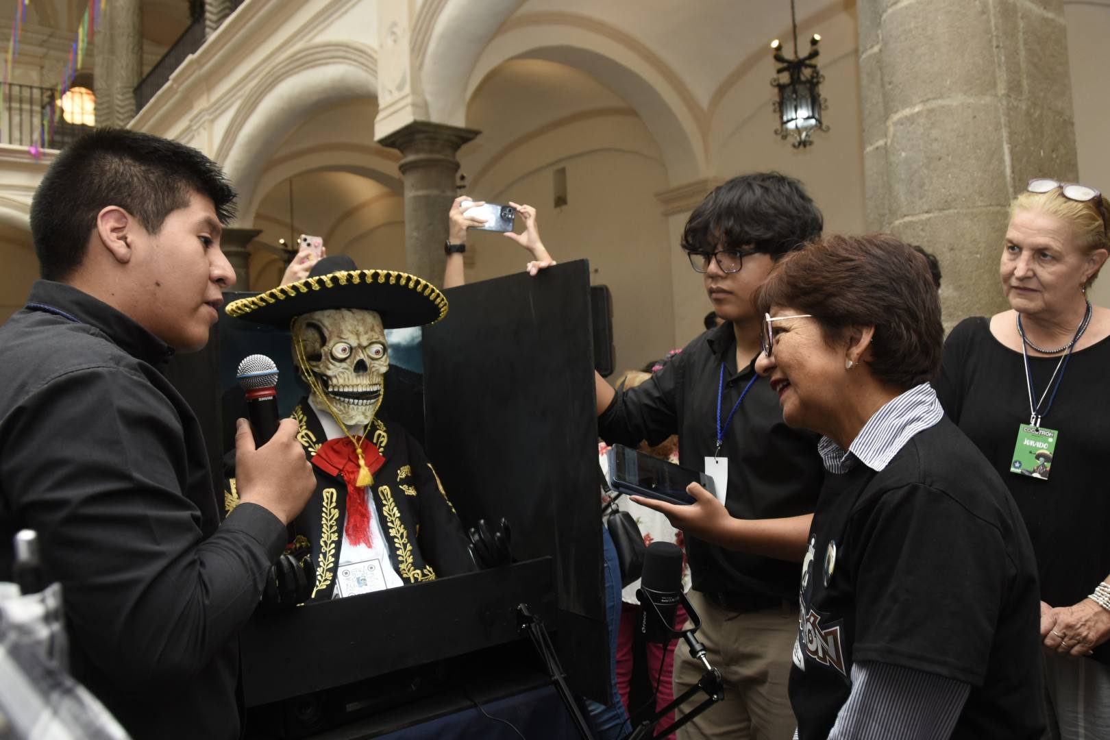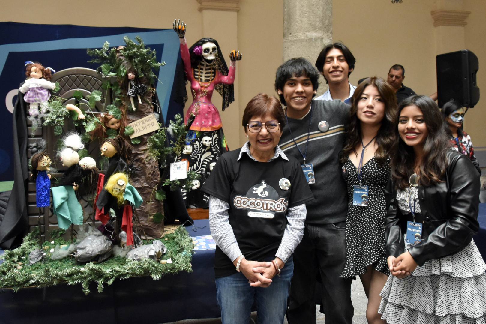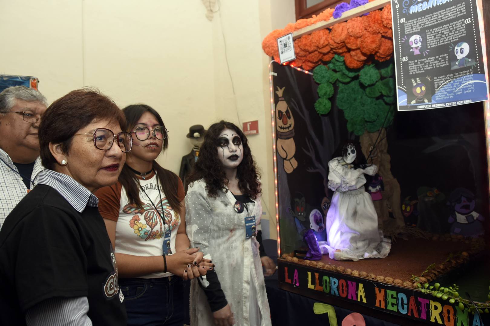 Durante la inauguración del evento, realizado en la Casa de la Bóveda, la Rectora Lilia Cedillo Ramírez fue testigo de la creatividad de los jóvenes para dar “vida” a personajes relacionados con leyendas o mitos alusivos al Día de Muertos; así como historias de terror, todo ello a través de escenarios y dispositivos electrónicos.