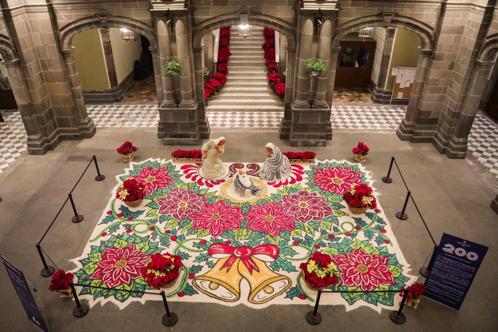 La titular del IMACP, Anel Nochebuena, informó que de este nacimiento que se extiende por el centro del patio de Palacio Municipal, sobresale la alfombra que está inspirada en la flor endémica de México, la nochebuena, logrando un diseño lleno de detalle y color que refleja la belleza de la cultura y tradiciones mexicanas.