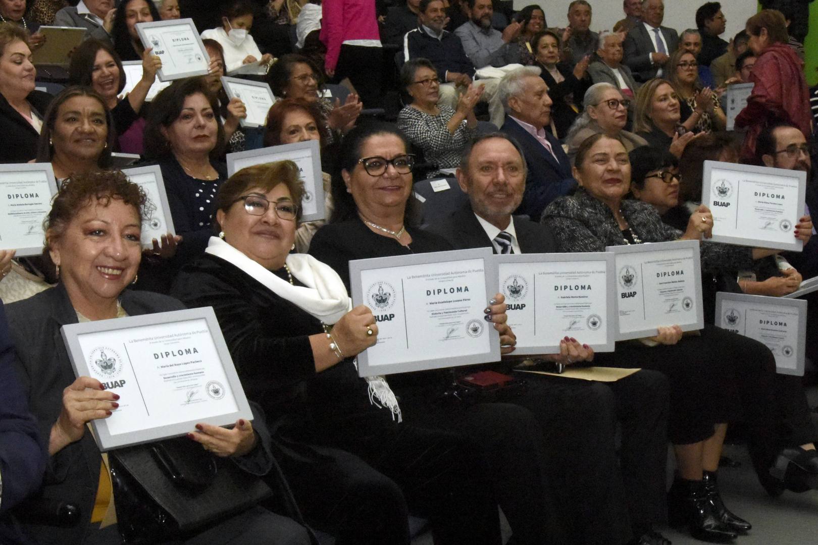 A nombre de los diplomados, Martha Velázquez Martínez expresó su satisfacción por encontrar un lugar para aprender, descubrir nuevas facetas, familiarizarse con la tecnología y convivir con algunos más jóvenes. “En la UpA no sólo adquirimos saberes sobre cultura, arte, salud y calidad de vida, también compartimos conocimientos y momentos agradables. Encontramos un espacio de compañerismo y alegría. Puedo decir que la UpA se ha convertido en una extensión de nuestros hogares. Me siento orgullosa de ser parte de esta generación y de la BUAP”.