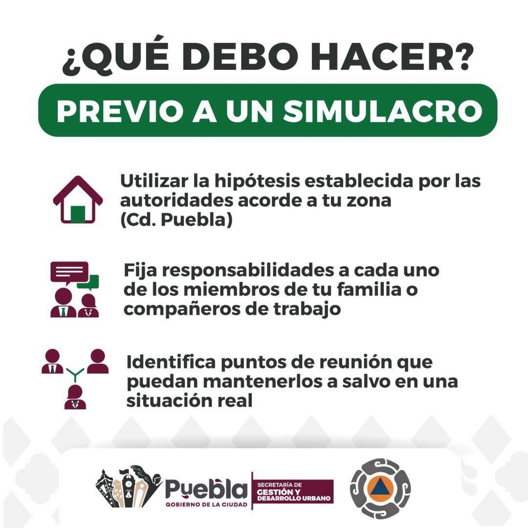 Puebla, Pue., 21 de abril de 2025.– Como parte de la estrategia para salvaguardar la vida de las y los poblanos, el Gobierno de la Ciudad encabezado por el presidente municipal, Pepe Chedraui Budib, hace un llamado a la ciudadanía a prepararse adecuadamente para el Primer Simulacro Nacional 2025, que se llevará a cabo el próximo 29 de abril a las 11:30 horas.