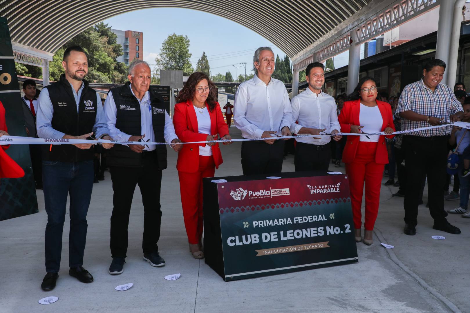 Puebla, Pue., 06 de mayo de 2025.- Como parte de las acciones para mejorar la infraestructura educativa en la capital poblana, el presidente municipal, Pepe Chedraui Budib, inauguró el techado escolar de la Primaria Federal Club de Leones No. 2 en la colonia Amor, el cual beneficiará a más de 500 estudiantes de educación básica.