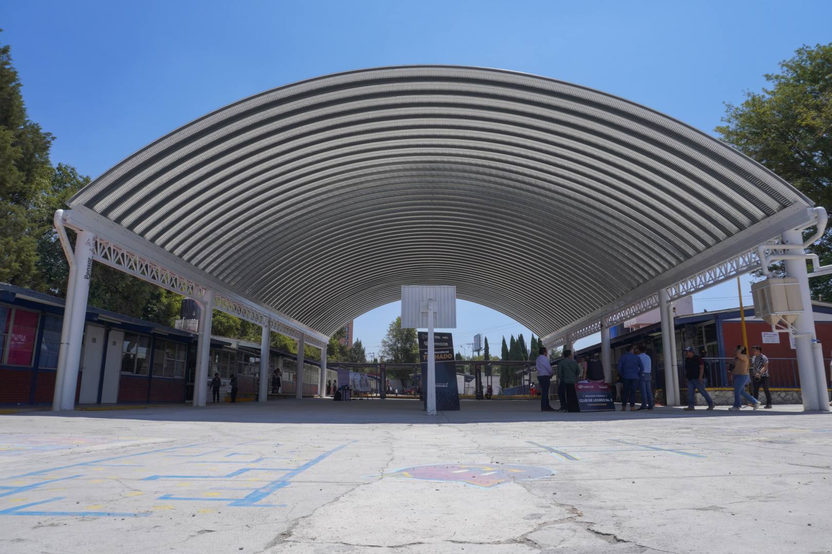 En su mensaje, el secretario de Movilidad e Infraestructura, David Aysa informó que esta obra integral incluyo la construcción de un techado de 30 metros de longitud y 20 metros de ancho, lo que generará un área de sombra de 600 metros cuadrados. Además, se instaló un sistema de captación pluvial, el cual le permitirá a esta institución recolectar hasta 5 mil litros de agua de lluvia.