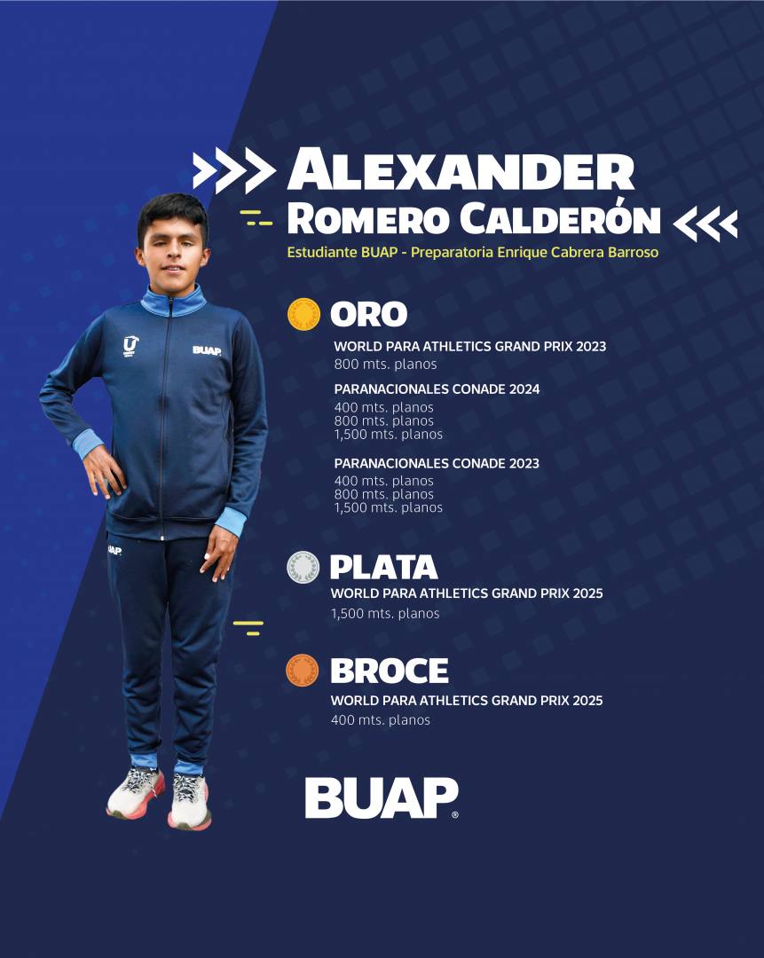 De ser un simple pasatiempo, el atletismo pasó a formar parte importante en la vida de Alexander Romero Calderón, estudiante de segundo semestre de la Preparatoria Enrique Cabrera Barroso de la BUAP, quien se ha posicionado en los primeros lugares de los 400, 800 y 1000 metros planos.