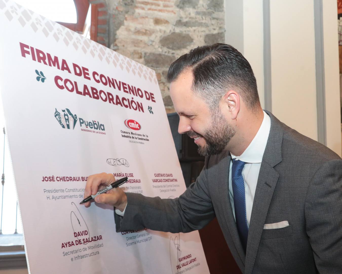 Con el objetivo de fortalecer la generación de alianzas estratégicas, la colaboración interinstitucional, así como impulsar el desarrollo económico del sector de la construcción en la capital, el presidente municipal, Pepe Chedraui Budib, signó un convenio de colaboración con la Cámara Mexicana de la Industria de la Construcción CMIC Delegación Puebla.