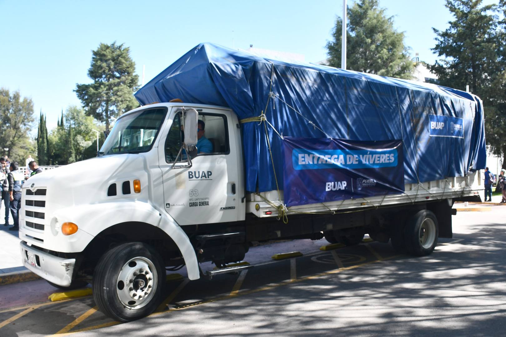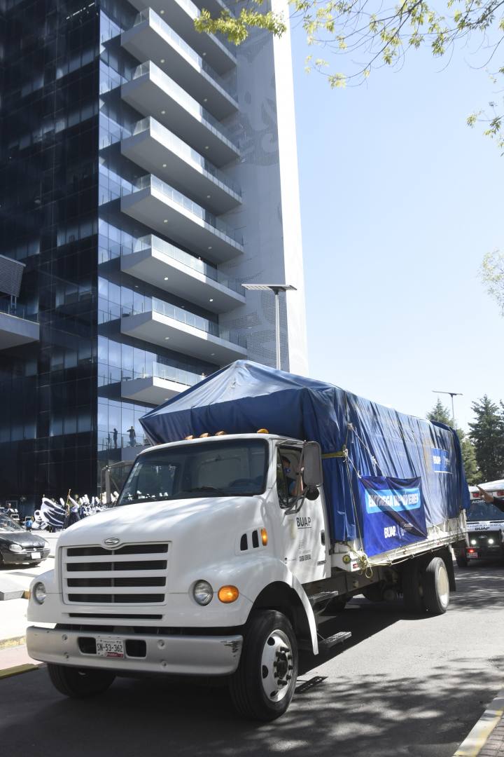La Rectora de la BUAP, Lilia Cedillo Ramírez, dio el banderazo de salida a dos camiones con víveres donados por la comunidad universitaria: un total de 14 toneladas, de las cuales 10 serán depositadas en el Complejo Regional Norte y cuatro en el Complejo Regional Nororiental, donde los estudiantes organizarán brigadas para entregar estos productos a las familias afectadas por las intensas lluvias en esa región del estado.