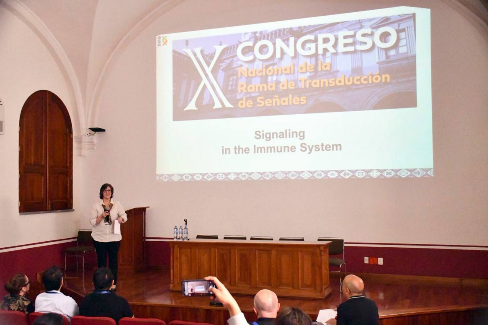 En el segundo día de actividades, la doctora Claudia González, del Cinvestav del IPN, explicó que la comunicación celular es fundamental para el sistema inmunológico; se trata de una conexión de muchas entidades que están siempre colaborando entre sí y que incluyen a un número grande de estirpes celulares distribuidas en todo el organismo con diferentes funciones y capacidades, bajo el control de distintos mecanismos.