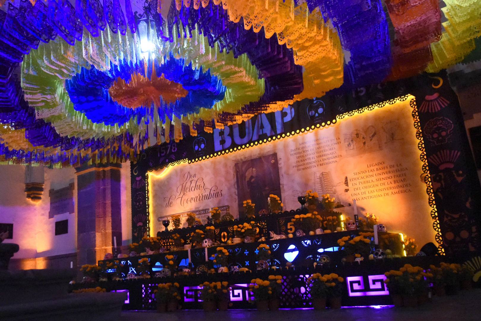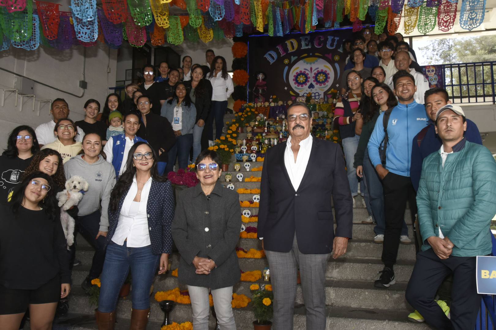 En la Torre de Gestión Académica y Servicios Administrativos también montaron ofrendas llenas de color, flores de cempasúchil, fruta de temporada, alimentos y bebidas, calaveritas de azúcar, figuras de papel mache, luces y todo lo requerido para honrar a familiares, mascotas, personal que “se adelantó”, o bien, en honor a personajes destacados como la astrónoma y divulgadora Julieta Fierro; Juan Gabriel, el divo de Juárez; Emma Telmo, primera mujer locutora de radio en México; Bertha Yeverino, pionera de la radio en Puebla; y Guglielmo Marconi, genio de la comunicación moderna.