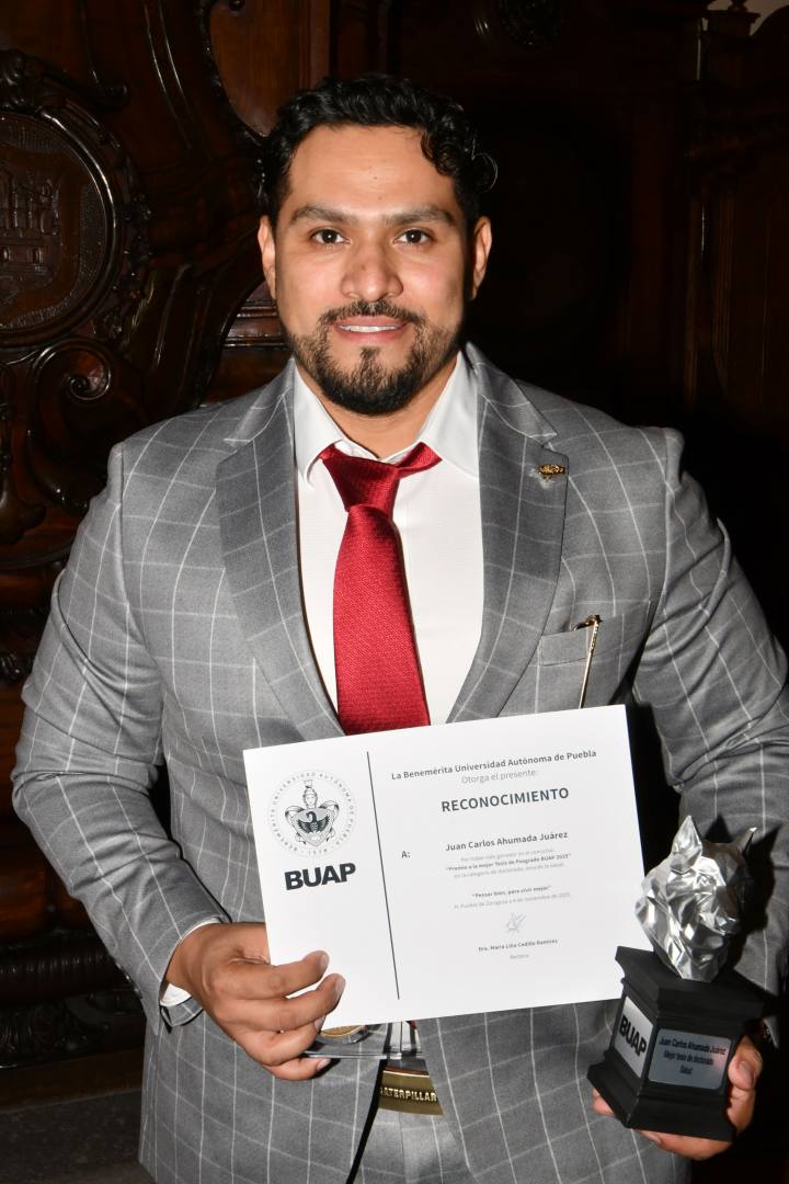 Las medallas y estatuillas a Mejor Tesis de Doctorado correspondieron a Mario Aceves Mejía, en Ciencias Sociales y Económico-Administrativas; Omar Enrique Ahuatzin Flores, en Ciencias Naturales y Agropecuarias; Juan Carlos Ahumada Juárez, en Ciencias de la Salud; Gonzalo Chávez Salazar, en Ciencias de la Educación y Humanidades; Víctor Giovanni Morales Murillo, en Ingeniería y Tecnologías, así como para Carlos Augusto Martín Román Varela, en Ciencias Exactas.