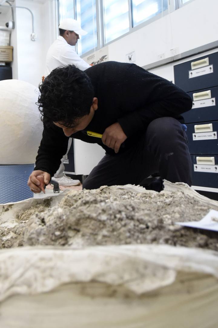 Otra línea de investigación de este laboratorio se enfoca en hallar, rescatar y estudiar los restos de megafauna como mamuts, bisontes, caballos, gliptodontes, entre otros. Para este trabajo, el doctor Castañeda Posadas, junto con su equipo de estudiantes de licenciatura y posgrado, realizan excavaciones en el Ecocampus, donde han encontrado este tipo de fósiles.