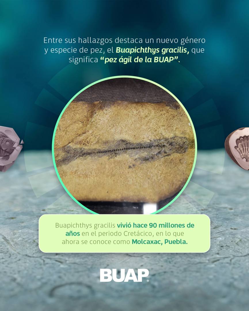Buapichthys gracilis es un pez ancestral que daría origen a los que actualmente conocemos, por ejemplo, los peces arrecifales. El trabajo del estudiante de posgrado, asesorado por los doctores Carlos Castañeda y Kleyton Magno Cantalice, investigador de la UNAM, implicó más de dos años de arduo trabajo, en el que la paciencia, la observación, el análisis comparativo y la descripción de huesos fueron clave. Al concluir, se publicó un artículo en la revista científica internacional Cretaceous Research, lo que permitió que la comunidad científica global aceptara este hallazgo y su nombre.