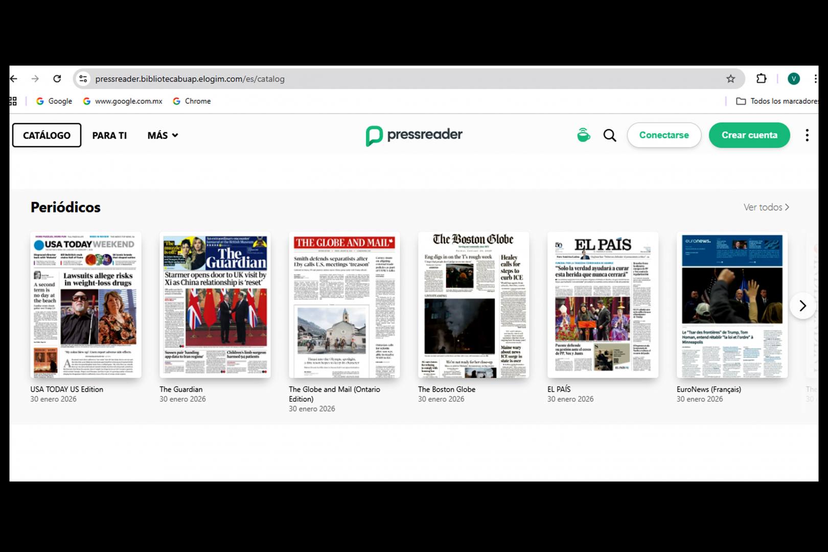 Entre los diferentes servicios bibliotecarios que oferta la BUAP está PressReader, un portal para la lectura de más de 7 mil periódicos y revistas internacionales de más de 100 países en 60 idiomas.